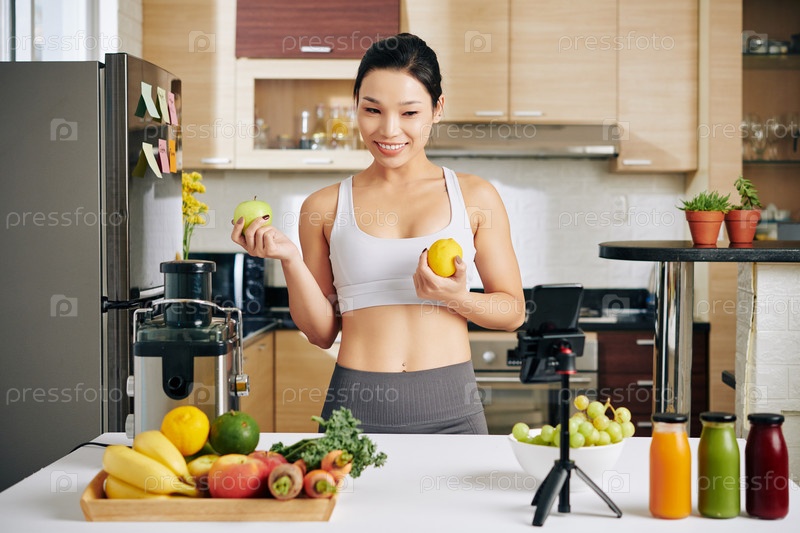 Фитнес-блогер делает смузи