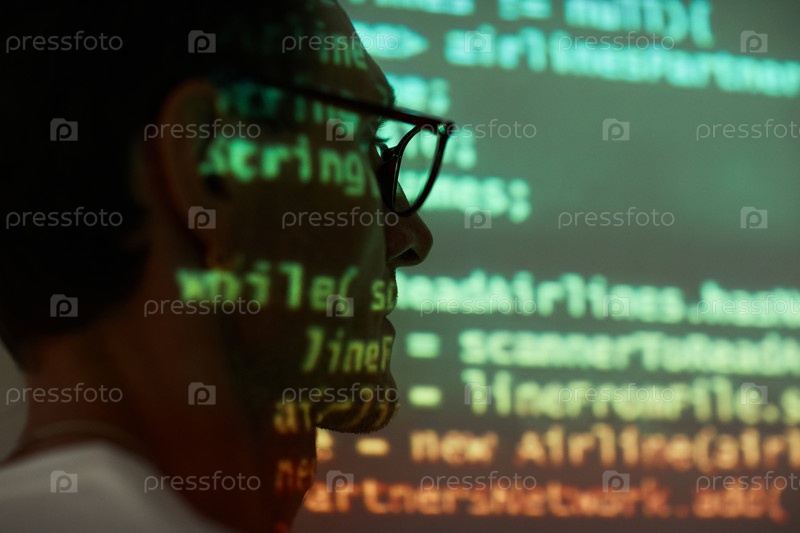 Программист на компьютерной презентации