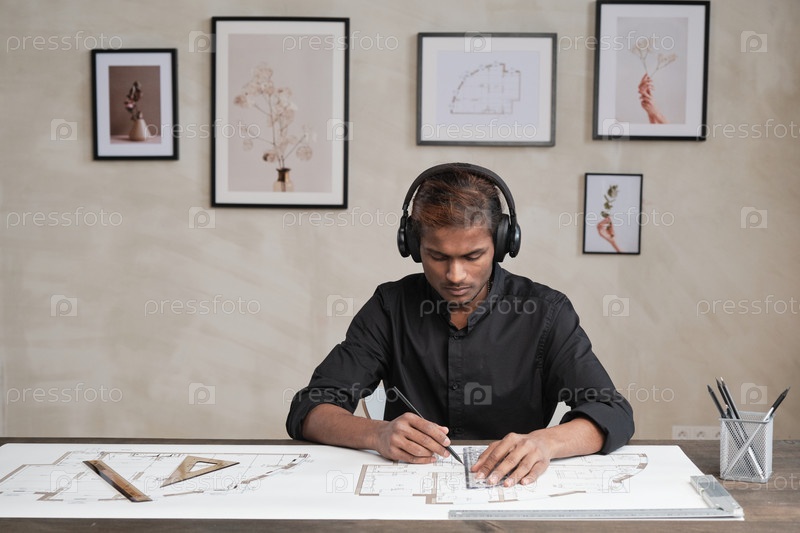 Инженер смешанной расы в наушниках