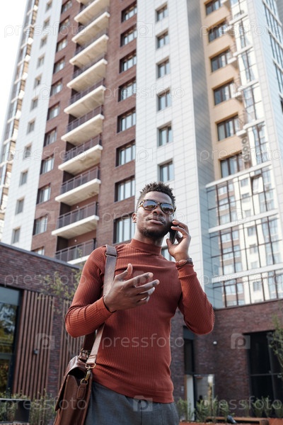 Молодой стильный бизнесмен разговаривает со своим смартфоном
