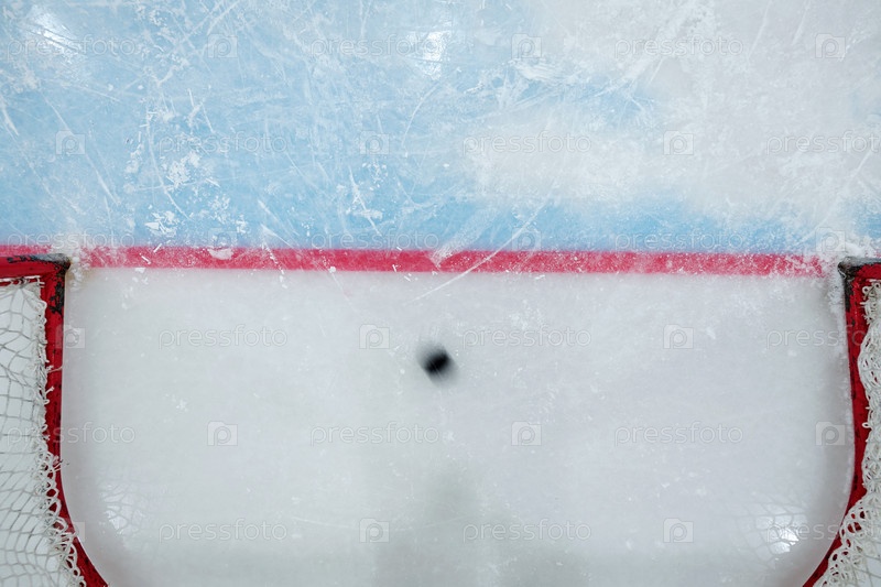 Обзор размытого движения шайбы, перемещающейся по ледовой площадке для игры в хоккей