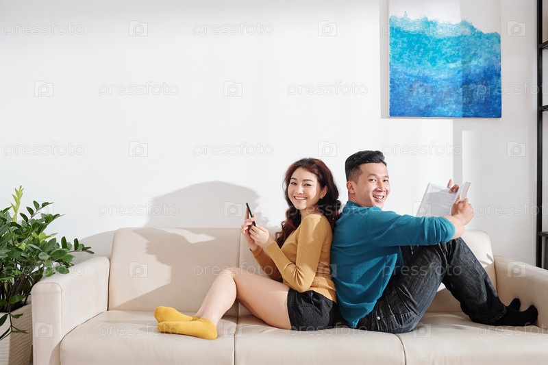 Пара отдыхает на диване