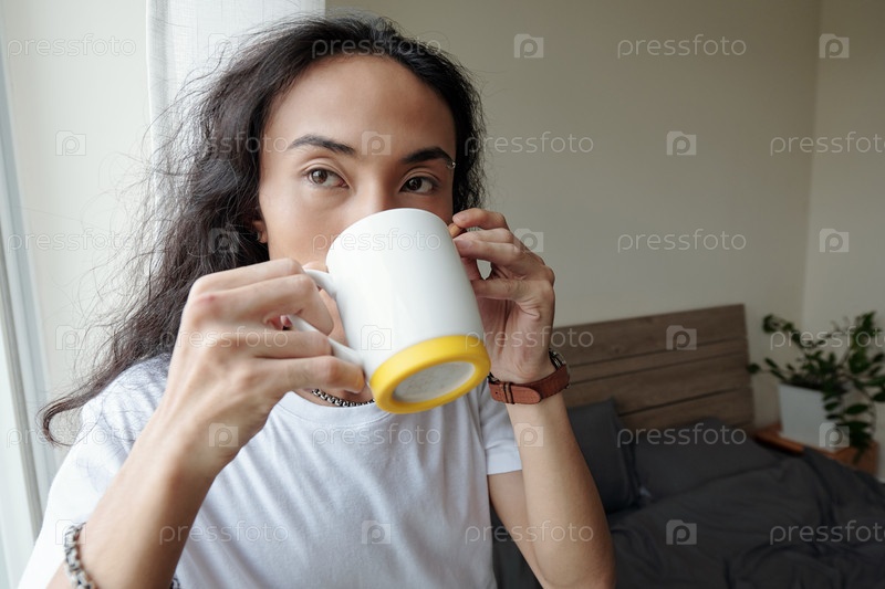 Человек, пьющий чашку кофе