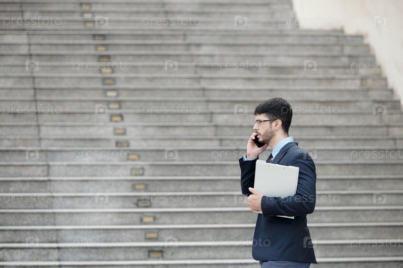 Серьезный бизнесмен разговаривает по телефону