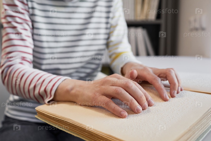 Женщина, читающая книгу Брайля