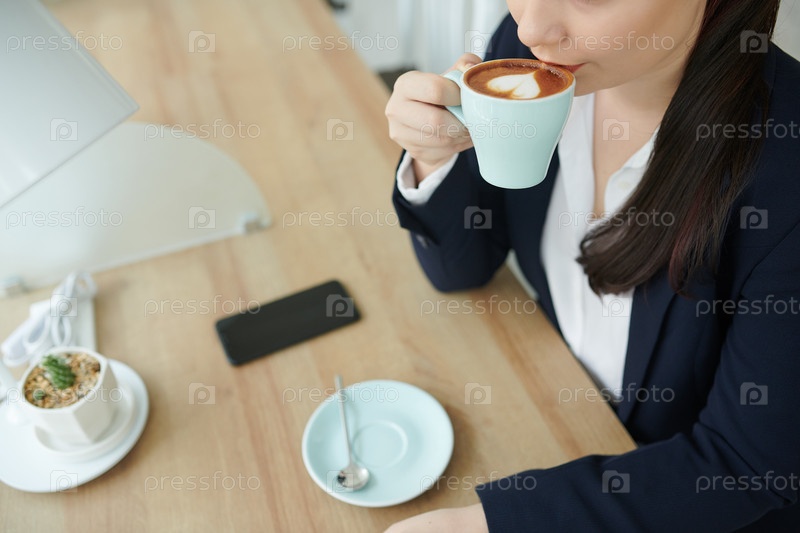 Деловая женщина пьет латте