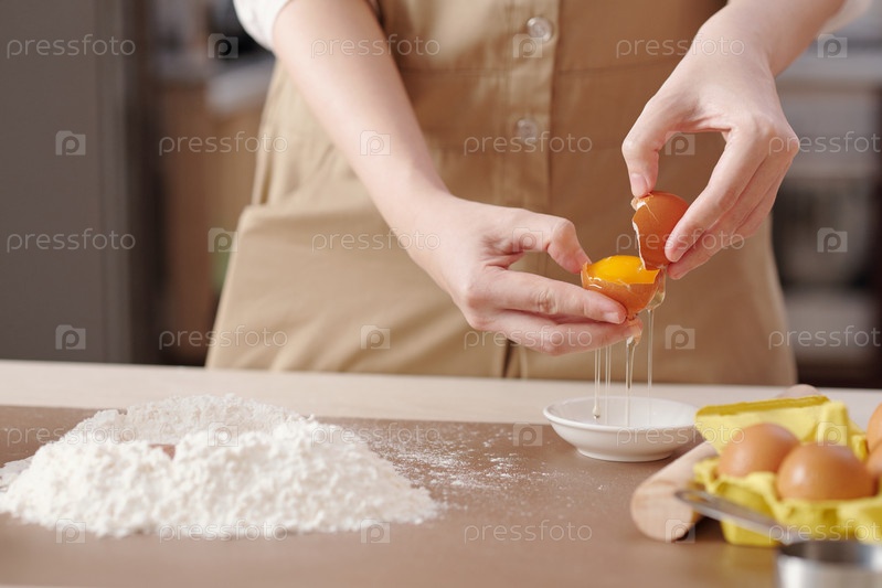 Женщина, отделяющая желтухи яиц от белых