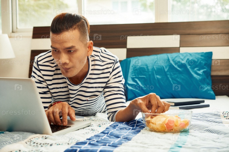 Мужчина смотрит увлекательный фильм