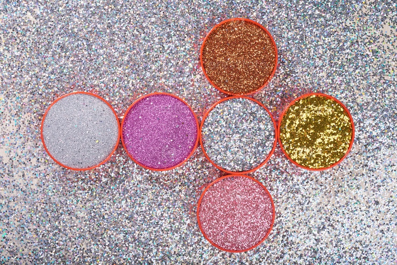 Голографический блестящий порошок, изолированный на сером фоне