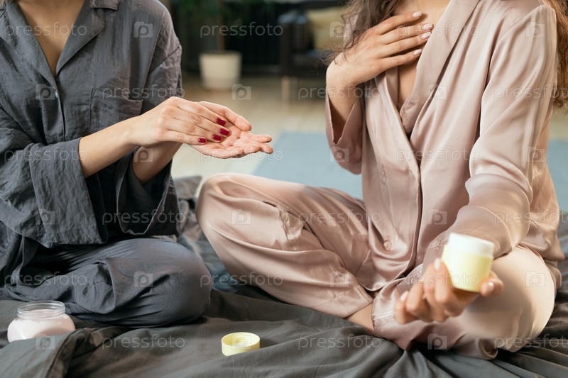 Две девочки, наносящие натуральный косметический продукт ручной работы на руки и тело