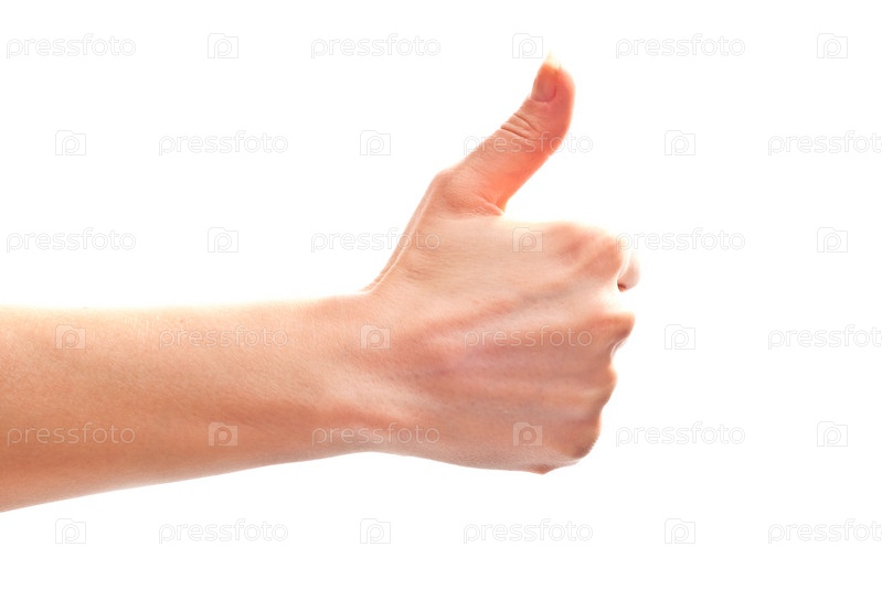 Большой палец руки поднят вверх на белом фоне