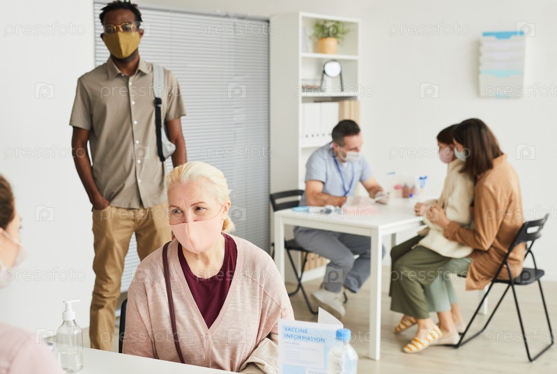 Старшая женщина, регистрирующаяся в центре вакцинации