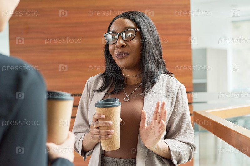 Женщина пьет кофе и разговаривает