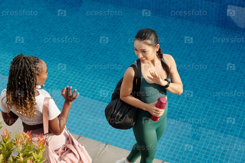 Улыбающиеся спортсменки, машущие друг другу