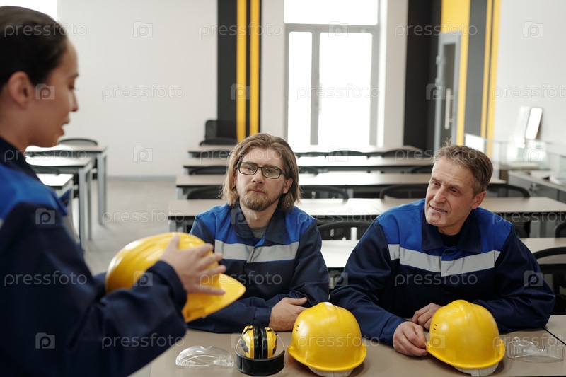 Рабочие, сидящие в фабричной столовой