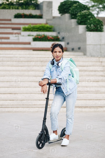Студентка на электрическом скутере