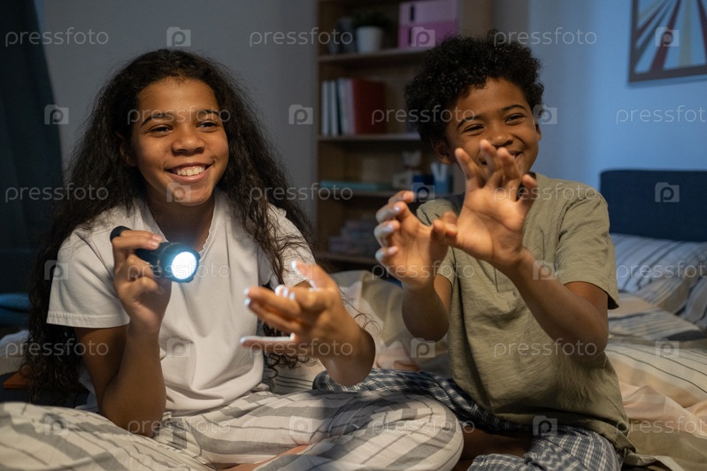 Игровые дети делают тень из рук существ