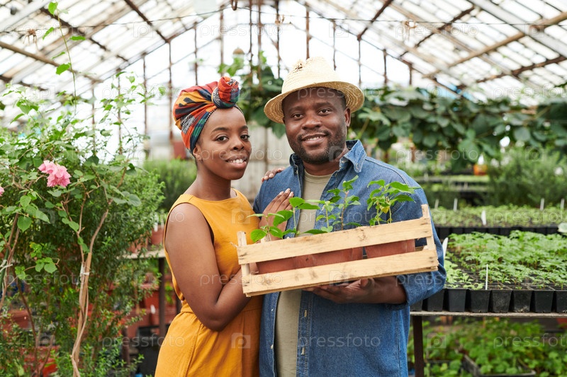 Молодая пара, работающая в саду