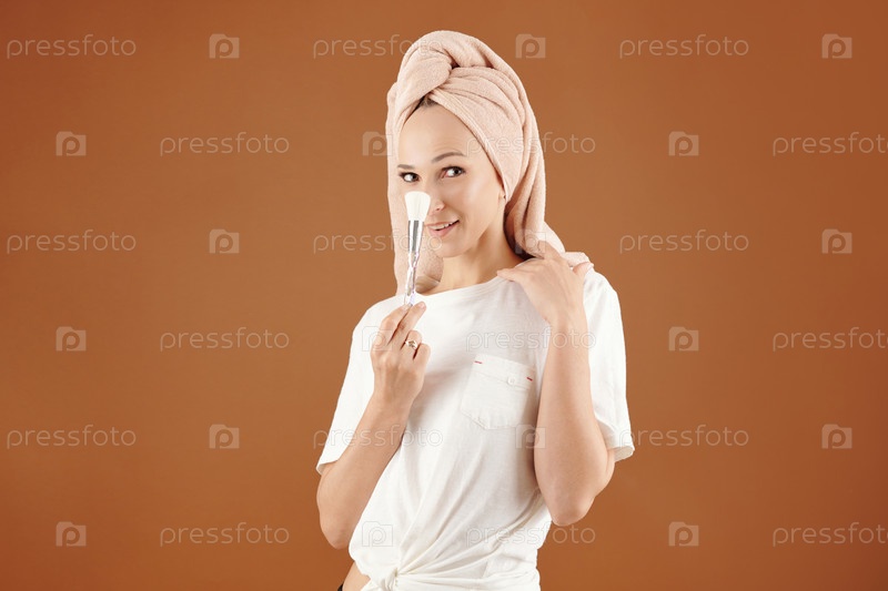 Женщина, использующая порошок для лица