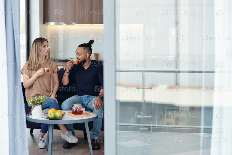 Пара пьет чай дома