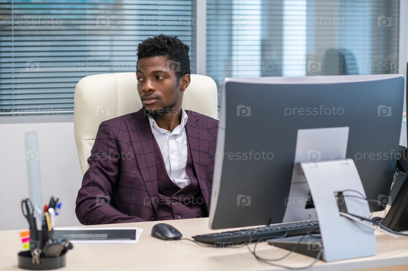 Молодой африканский бизнесмен в формальной одежде смотрит в сторону
