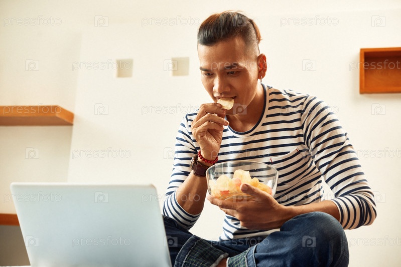 Мужчина смотрит фильм на ноутбуке