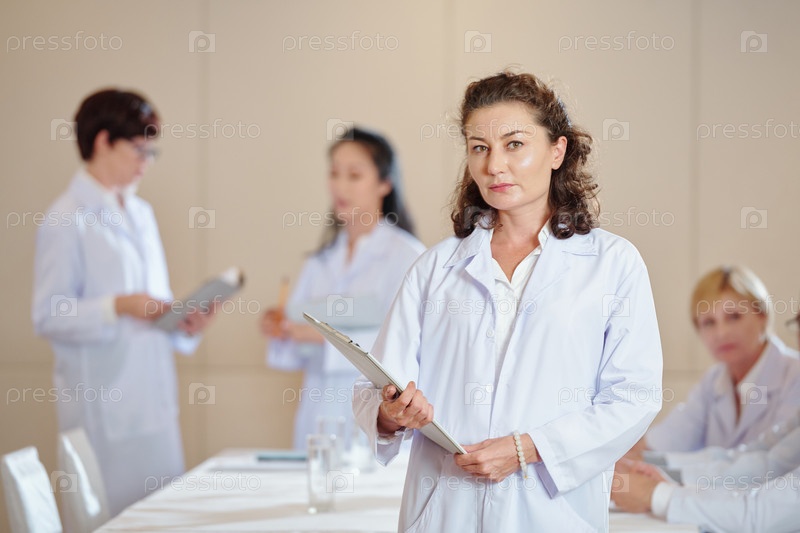 Зрелая исследовательница-женщина с клипбором