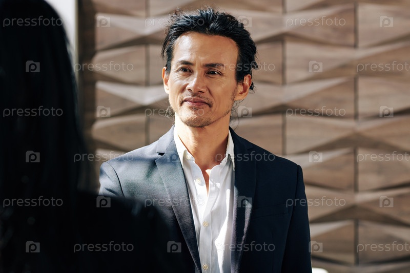 Бизнесмен смотрит на говорящего коллегу