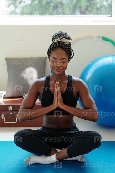 Женщина медитирует дома