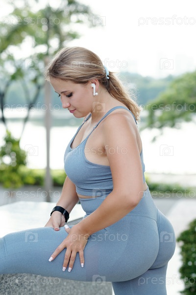 Спортсменка, растягивающая колготки