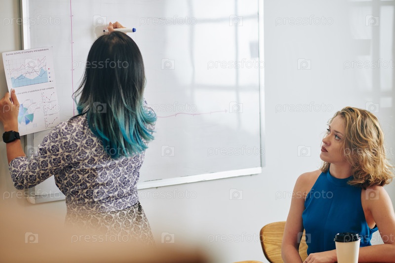 Woman drawing chart on whiteborad Женщина, рисующая график на витебораде