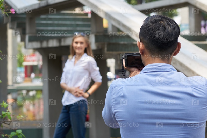 Красивый мужчина фотографирует свою подругу