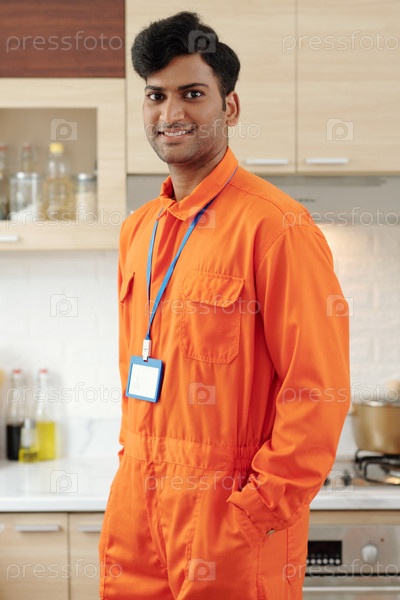 Улыбающийся сантехник с значком