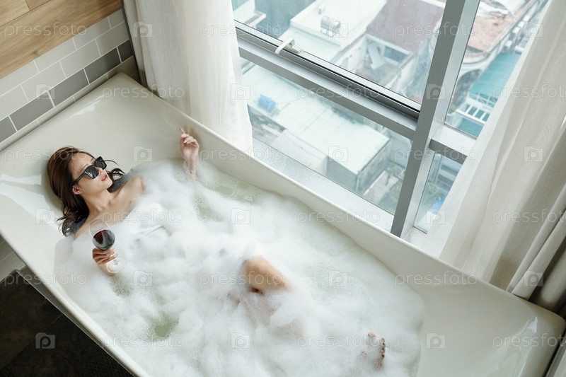 Женщина, принимающая пузырьковую ванну
