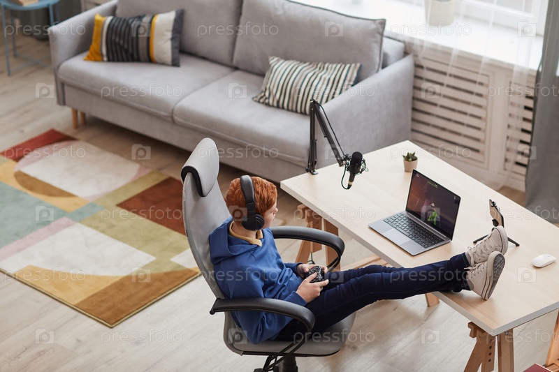 Подросток играет в видеоигры Современный фон