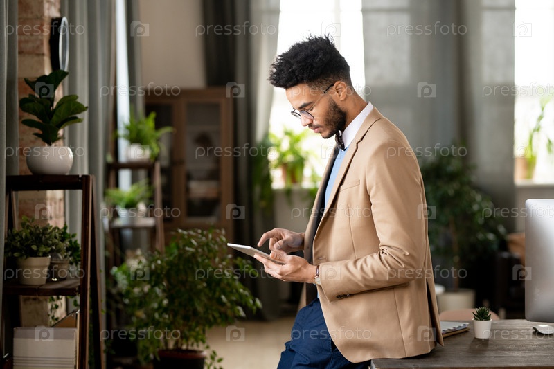 Пенсивный менеджер, работающий с онлайн-ресурсами
