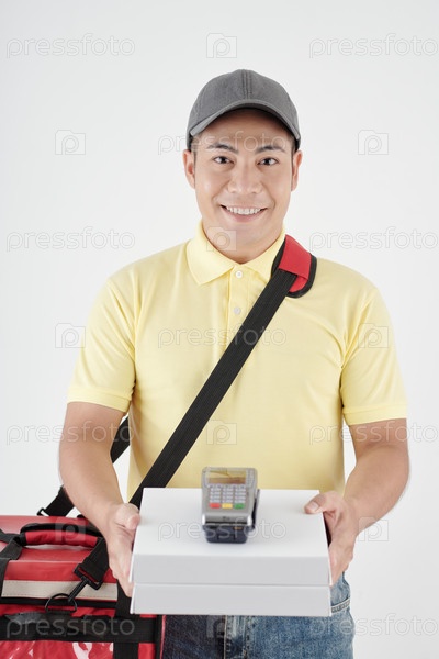 Курьер доставляет счастливую пиццу