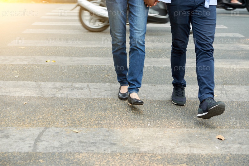 Пара пересекает дорогу