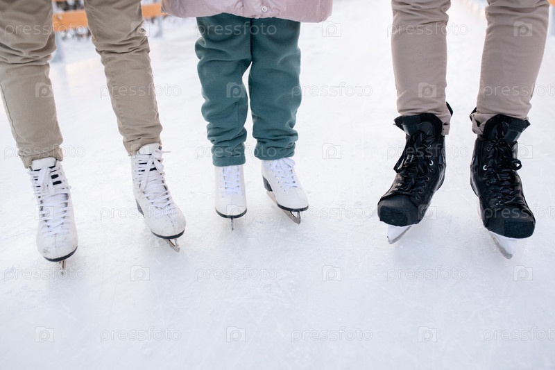Семья стоит на коньках