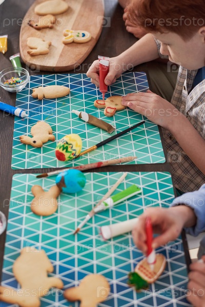 Дети украшают пасхальные печенье