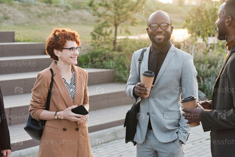 Сотрудники имеют кофейный перерыв на улице