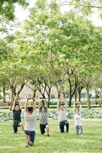 Люди занимаются спортом в парке