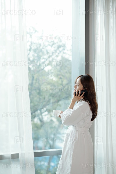Женщина в халате звонит по телефону