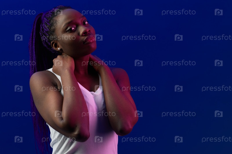 Молодая афроамериканская женщина на фиолетовом