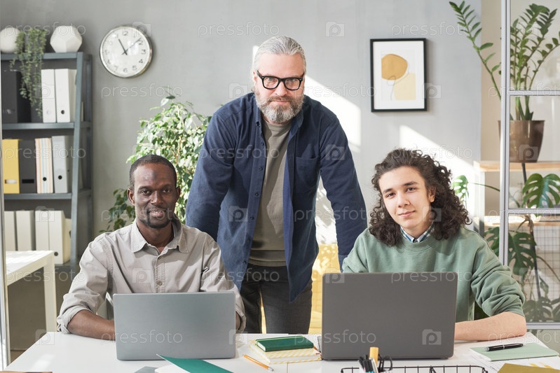Учитель с учениками в офисе