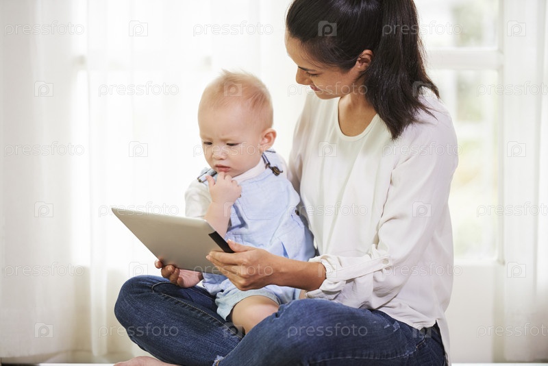 Мама и сын смотрят мультфильмы