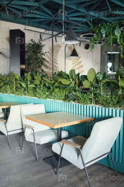 Зеленые растения в интерьере кафе
