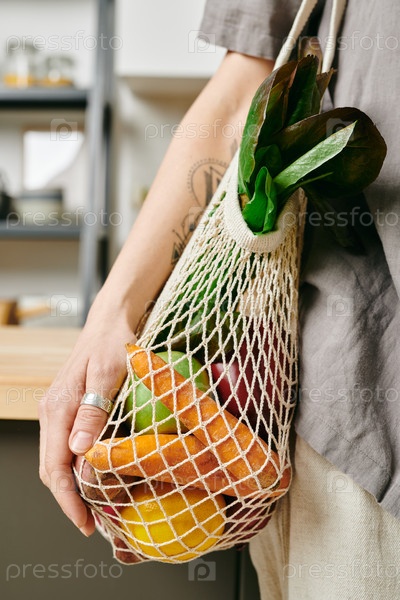 Человек, держащий сумку со свежими овощами