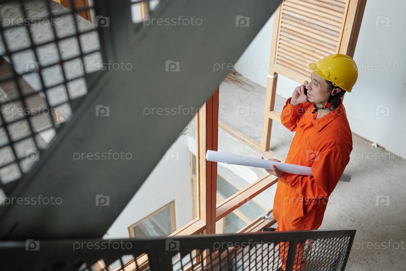 Форман разговаривает по телефону с подрядчиком