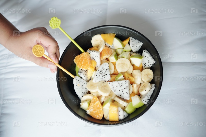Женщина здоровый фруктовый салат